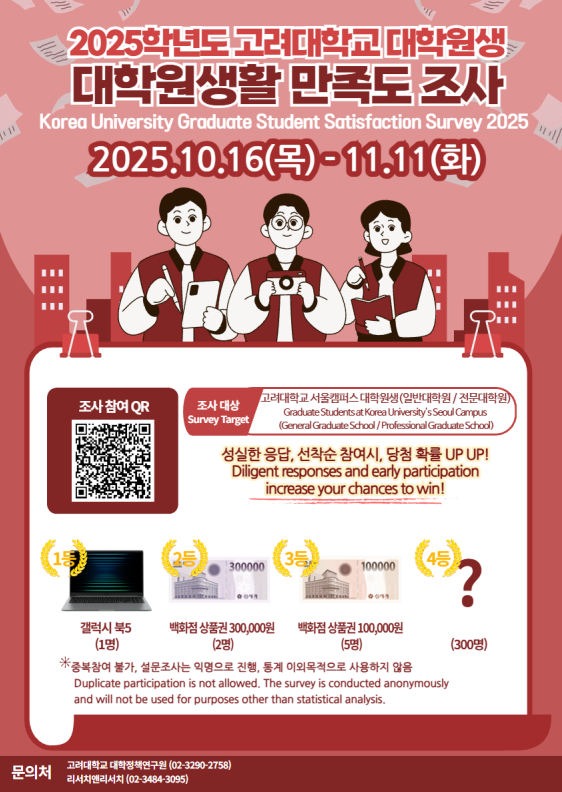 「2025학년도 대학원생 대학원생활 만족도 조사」를 실시하고 있습니다.