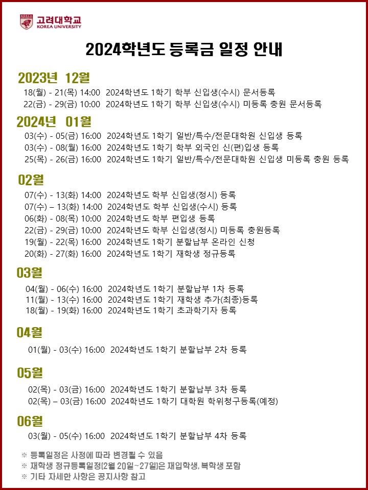 [공통] 2024학년도 등록금 일정안내 (1월~)