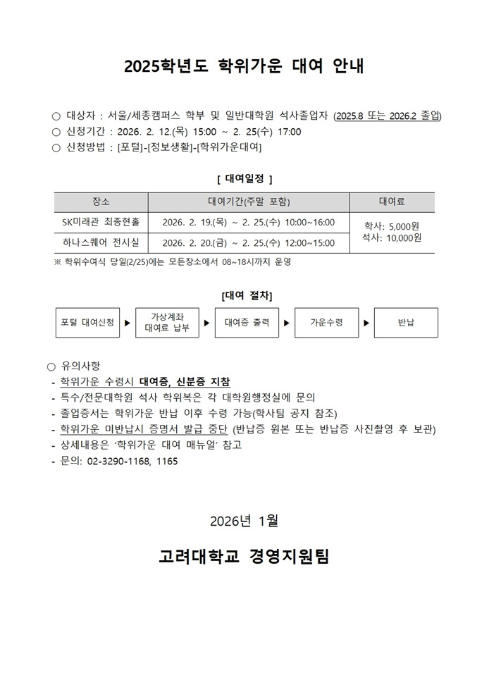 [학부] 2026학년도 제1학기 재입학 전형 합격자 안내